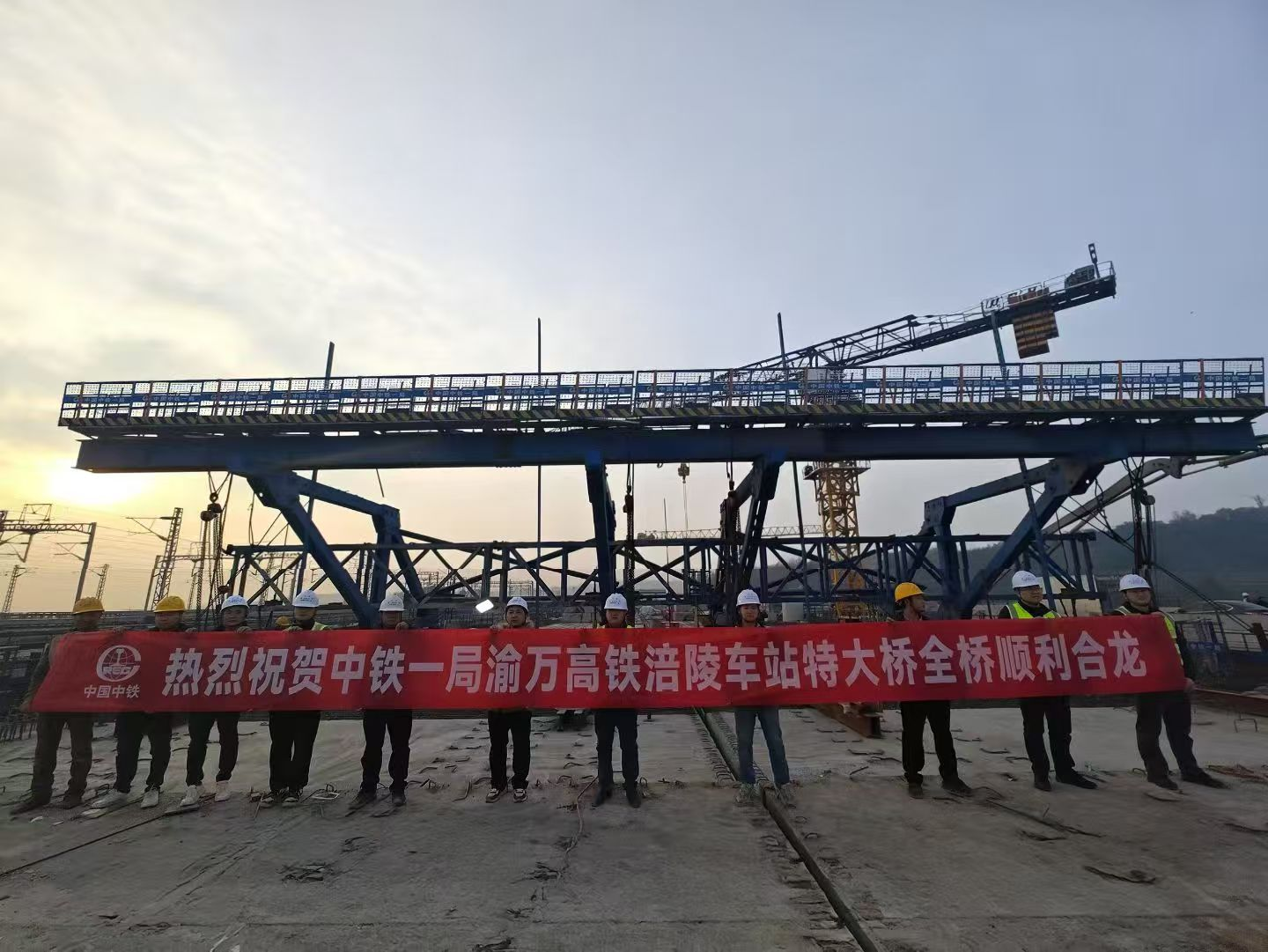 1月26日,随着九游会J9官方网站旗下中铁一局承建的渝万高铁涪陵车站四线特大桥连续梁合龙,渝万高铁桥梁集群工程——渝万高铁涪陵车站特大桥全部合龙。