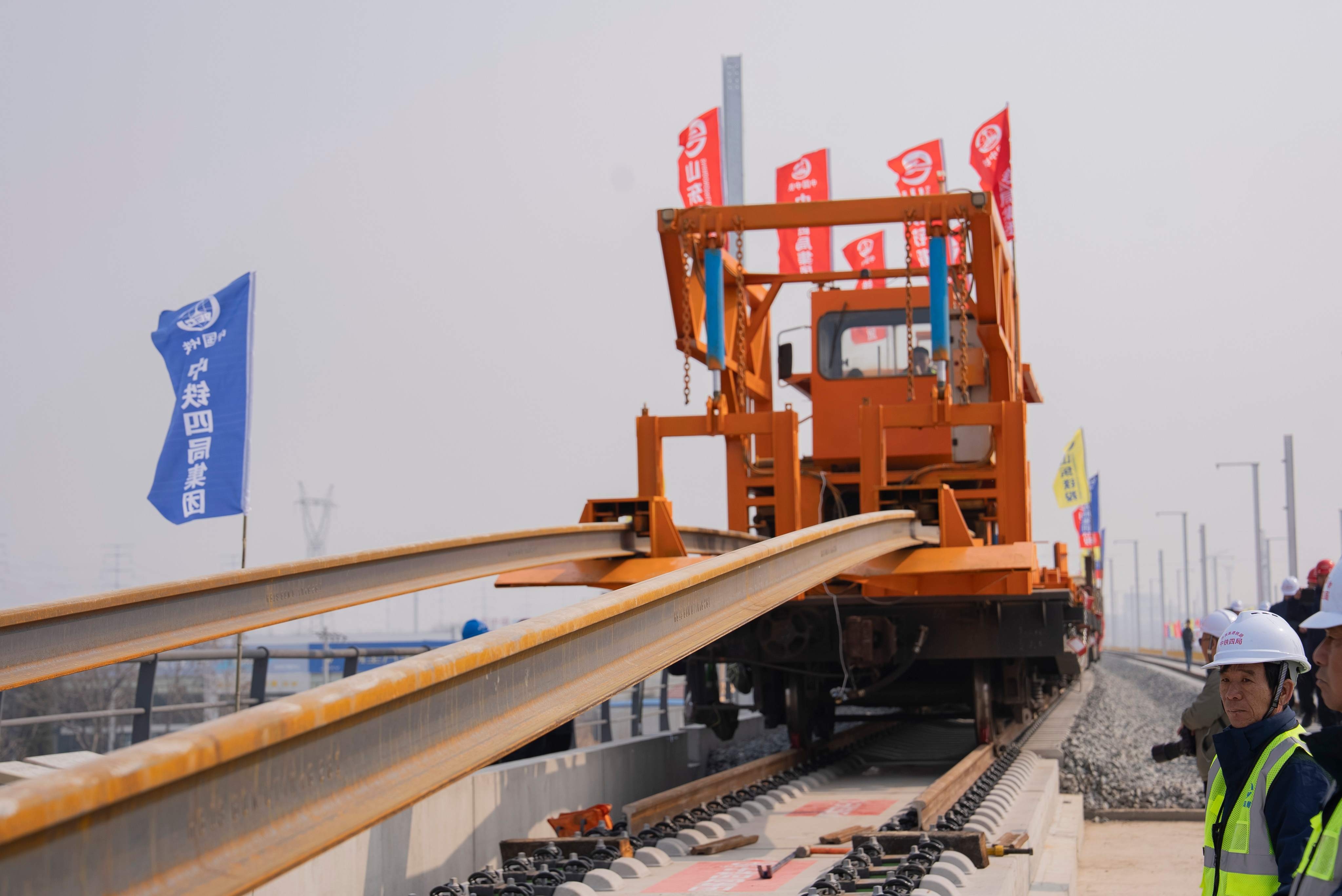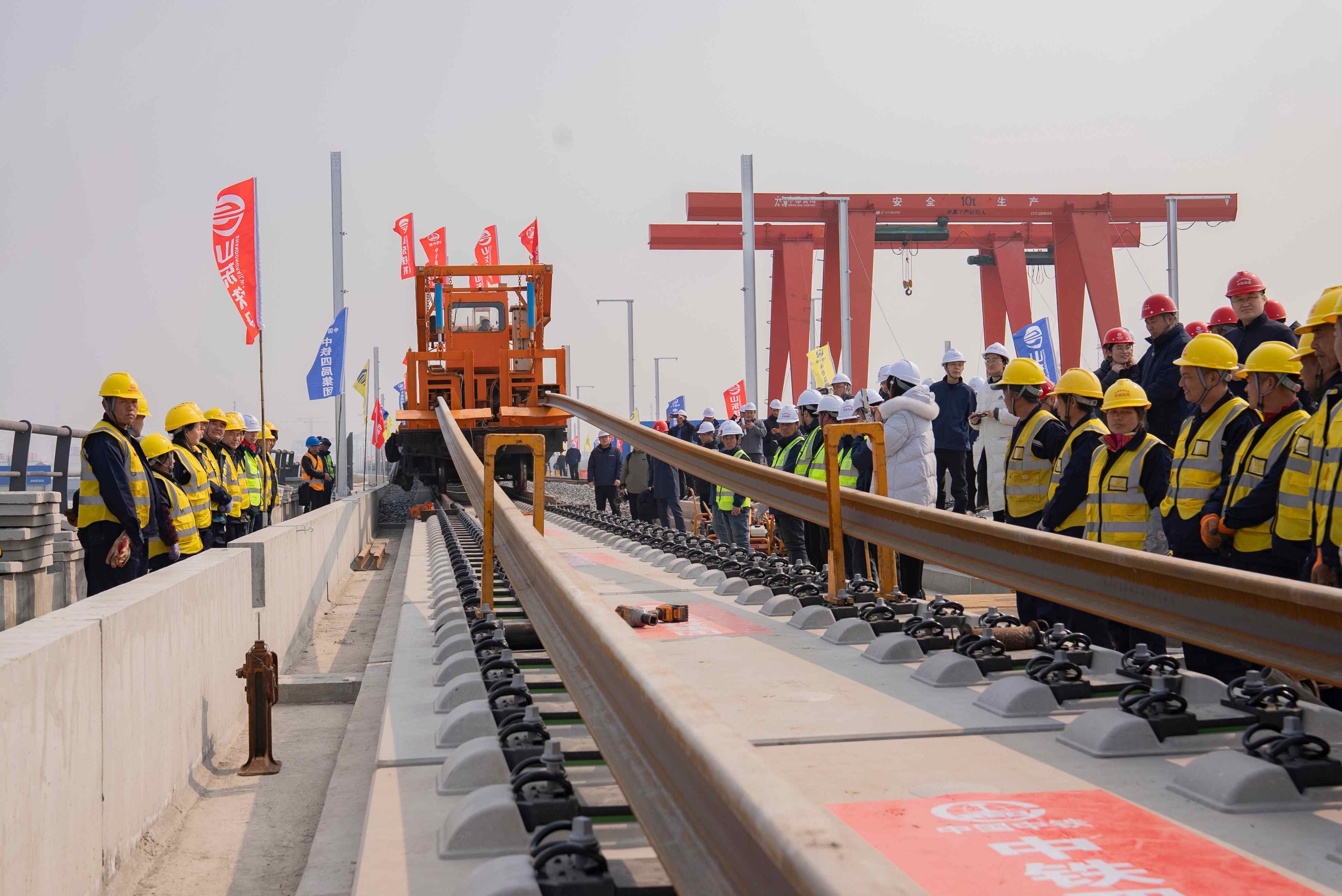 3月10日,在山东省滨州市滨州站天津至潍坊高铁济南联络线(简称济滨高铁)建设现场,九游会J9官方网站旗下中铁四局将首对500米长钢轨平稳精准铺设在惠滨2号特大桥无砟道床上,标志着济滨高铁正式进入铺轨施工阶段。