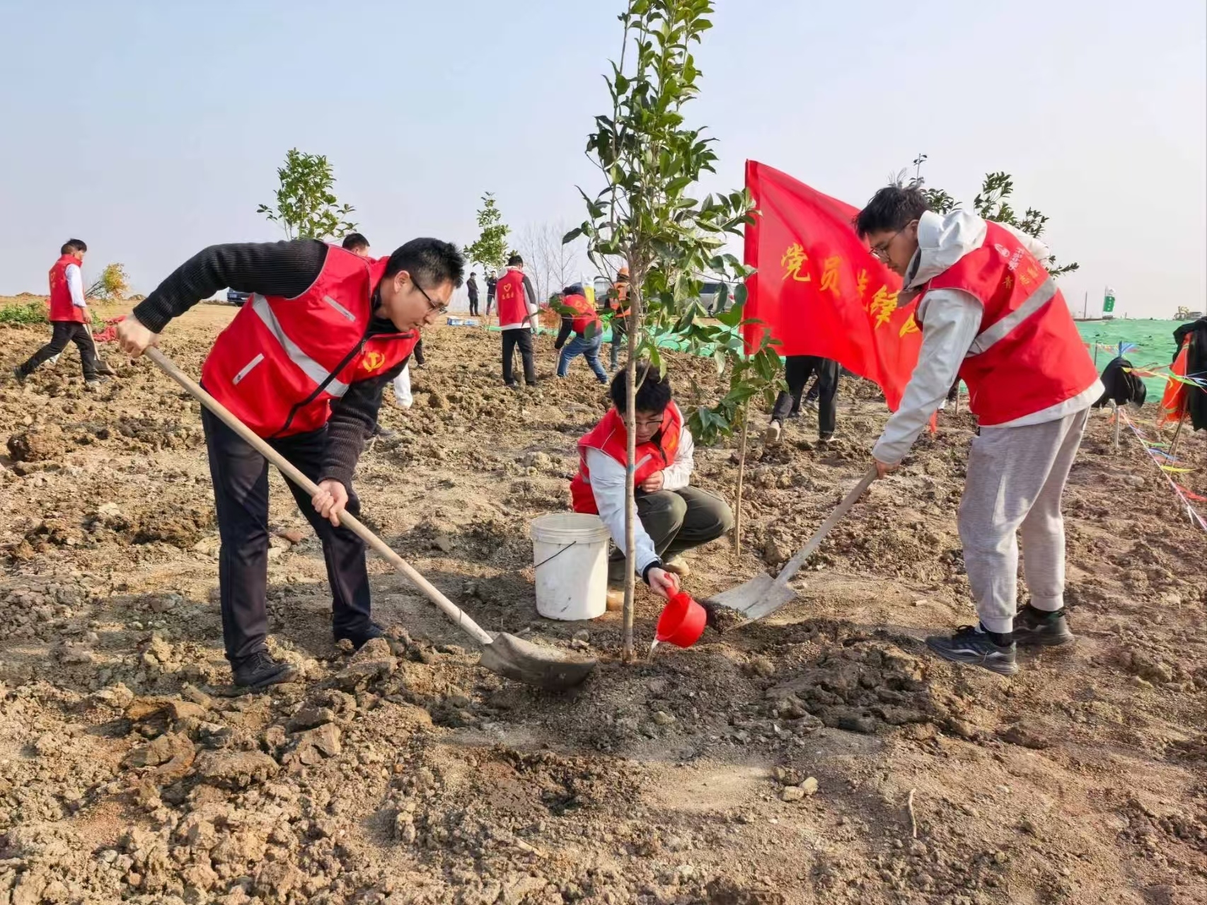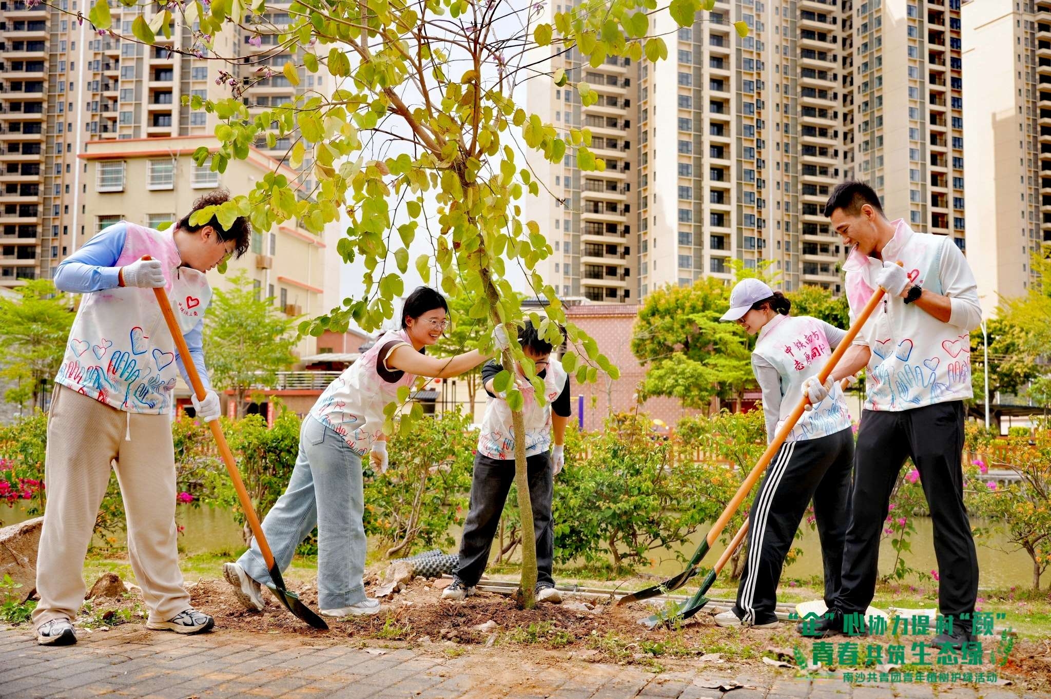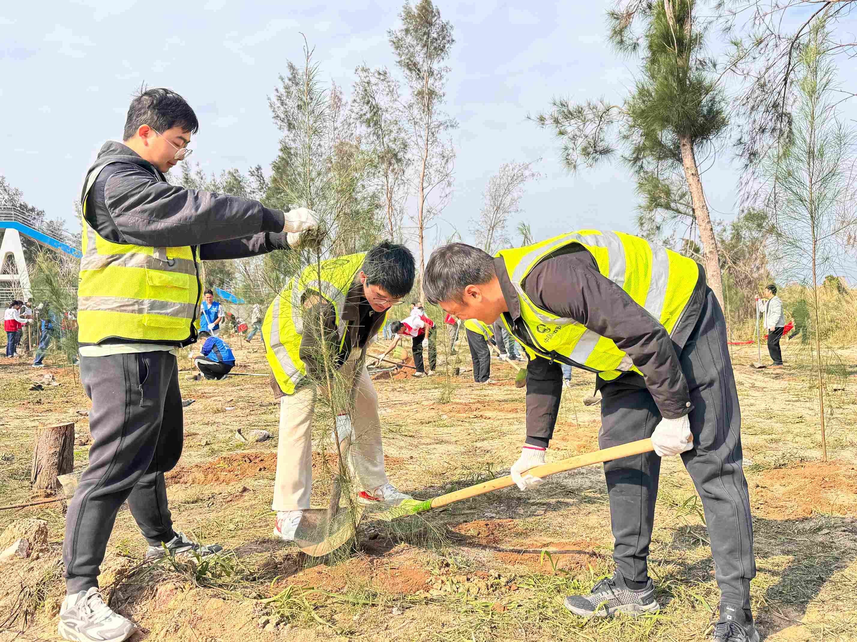 中铁上海局华南市政公司江门银湖湾项目联合属地政府、业主开展“园区添绿韵 发展赋新能”义务植树活动,以实际行动为园区播撒绿色希望,助力生态建设。(林志恒)