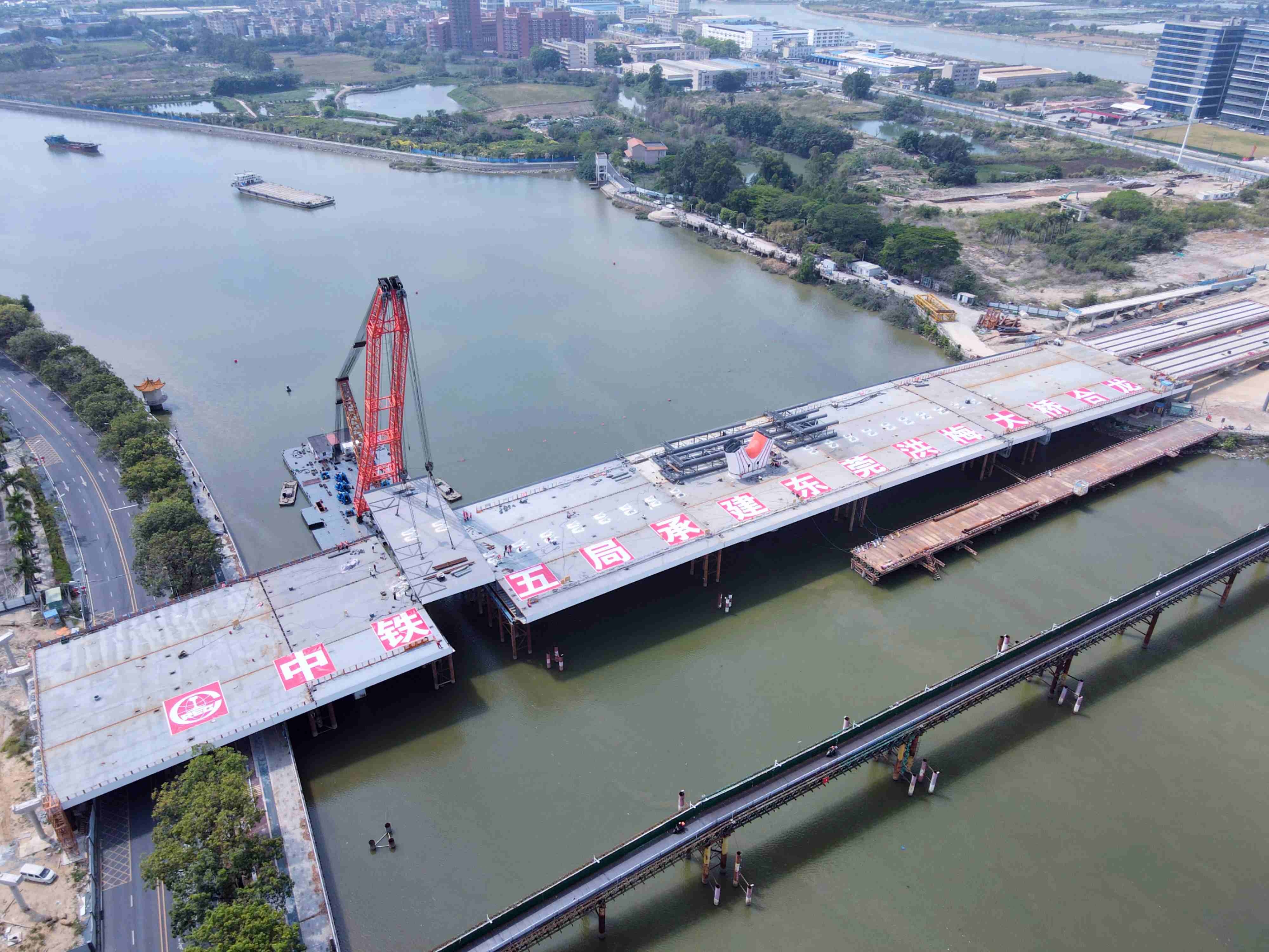 3月17日,九游会J9官方网站旗下中铁五局承建的广东省东莞市洪梅大桥钢箱梁合龙,大桥主体结构贯通。