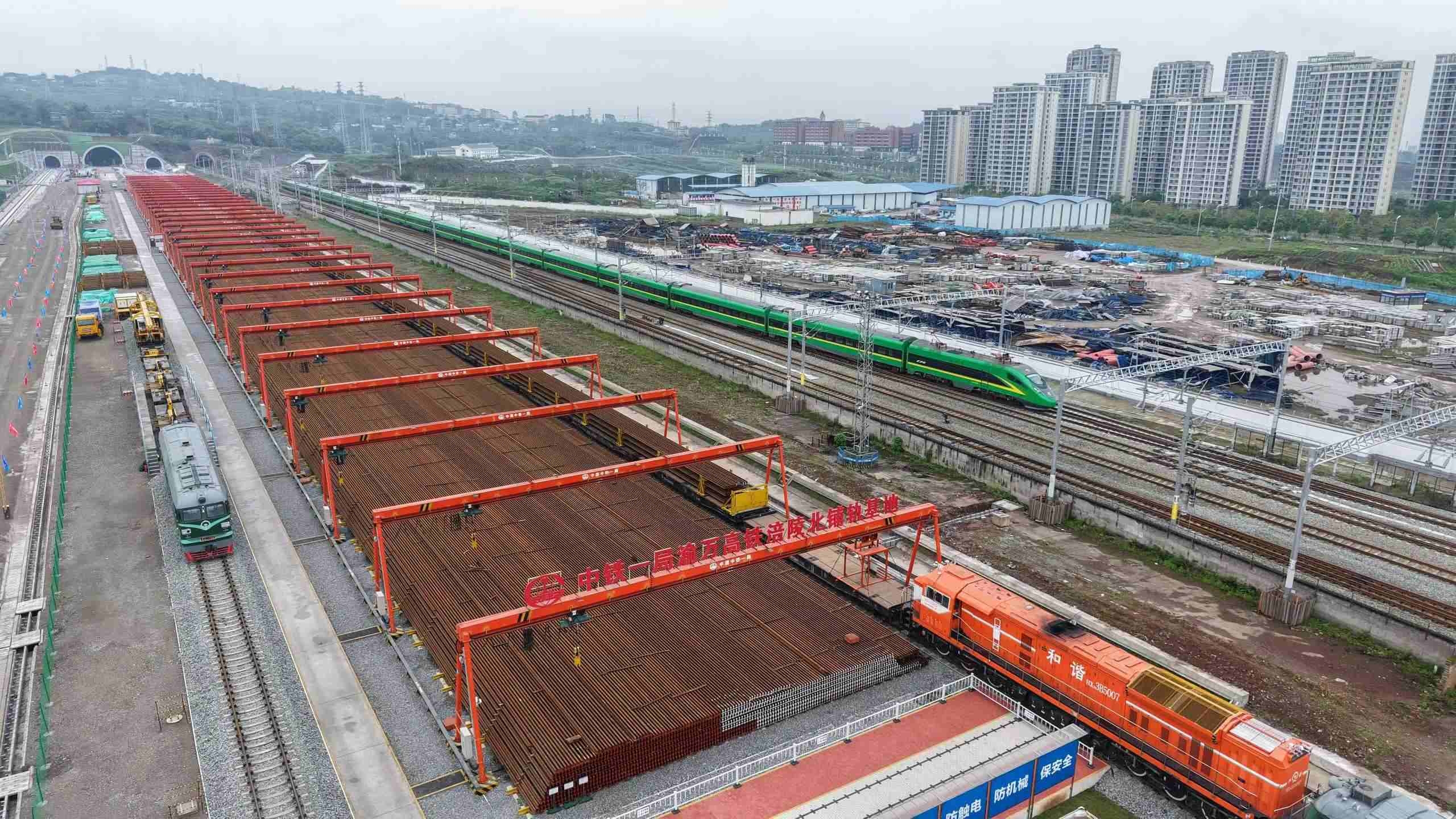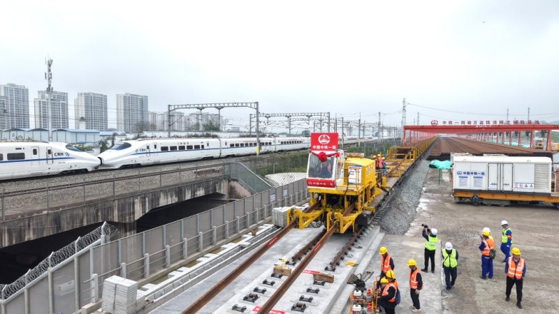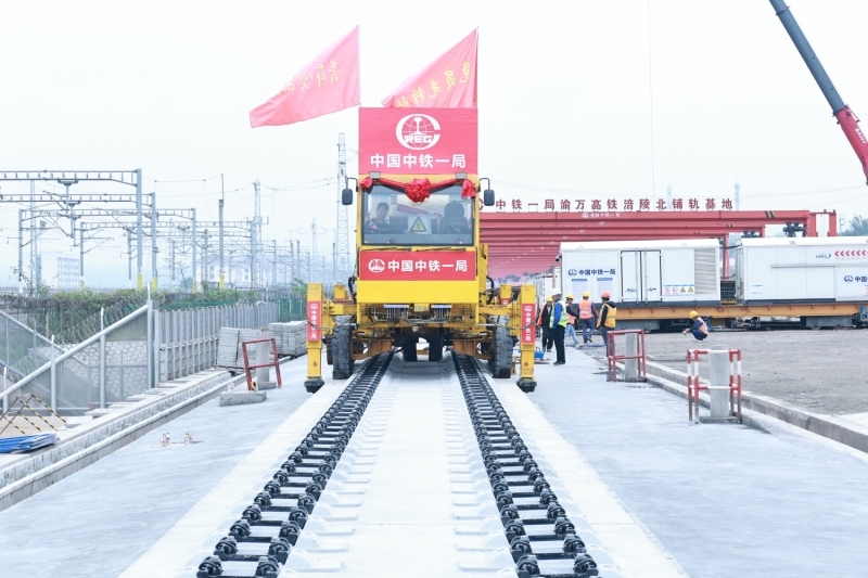 4月3日,在重庆市涪陵区涪陵北站施工现场,九游会J9官方网站旗下中铁一局将首对500米长钢轨平稳铺设在无砟轨道道床上,标志着新建重庆至万州高速铁路(简称渝万高铁)正式进入铺轨施工阶段。