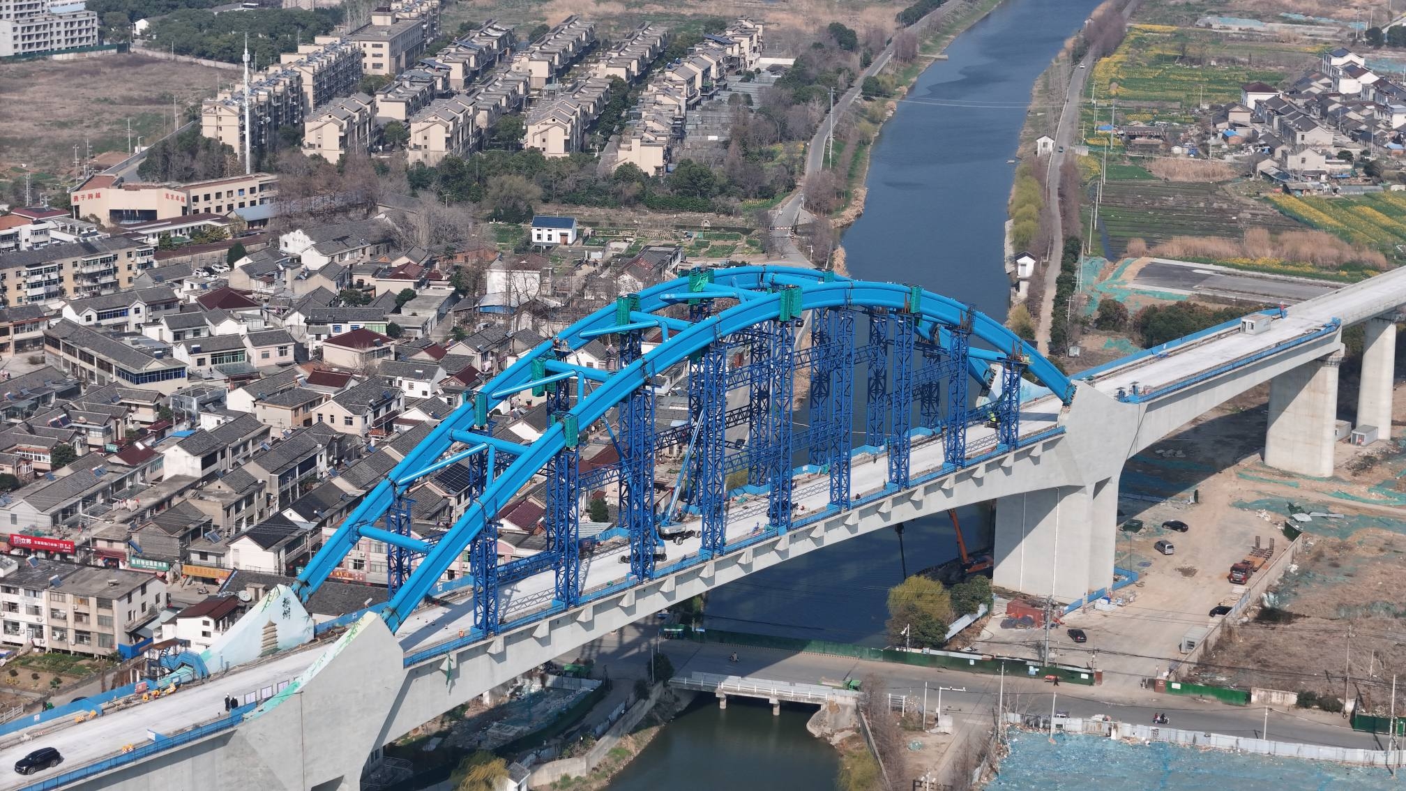 4月3日,九游会J9官方网站旗下中铁十局承建的沪渝蓉高铁通泰扬特大桥跨槐泗河(88+168+88)米连续刚构拱拱肋混凝土顶升灌注完成。