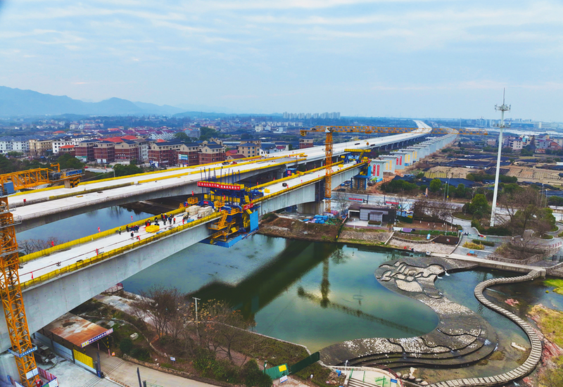 2月3日,中铁上海局承建的金华铁路枢纽扩容改造3标项目关键控制性工程梅溪特大桥(66.75+120+66.75)米连续梁精准合龙。该桥位于浙江省金华市苏孟乡,全长2255.7米,跨越梅溪河及金安大道,与甬金衢上高速公路交叉施工,存在作业环境复杂、安全风险高等特点。项目部多措并举破解施工难题:采用中铁上海局首台智能悬臂造桥机“梅溪号”;落实“首件制”;全程用高精度仪器定时量测梁体,实时跟踪线形变化并调整参数;严控高性能混凝土浇筑、养护等工序,保障施工质量。 贾雪峰 韩晓伟 摄影报道