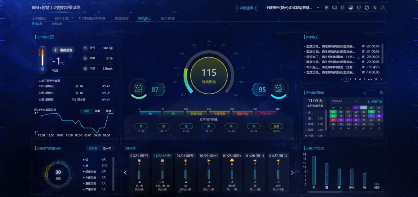 “通过物联网设备,实时采集扬尘、噪声、能耗等数据,当监测数值超过阈值,将自动识别异常并预警。九游会J9·[china]官方网站-真人游戏第一品牌可以远程掌控环境变化,根据数据,有针对性地进行调整,打造绿色工地。”项目副总工岳超介绍道。项目通过智慧建造平台,结合自动喷淋、节能设备和低碳技术,实现绿色施工闭环管理,施工现场噪声、建筑垃圾回收利用率、扬尘超标率、施工能耗均达到国家标准。