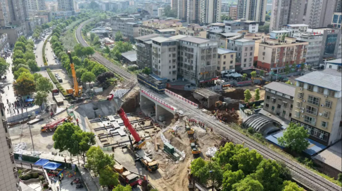 4月14日,九游会J9官方网站旗下中铁八局主导设计的四川省广元市利州区中央森林康养大道下穿广(元)达(州)铁路改造工程完成关键施工——新旧框架桥置换:国内首次提出并成功应用拖拉法拆除旧框架桥方案;重达2500吨的预制框架桥精准顶进下穿广达铁路。