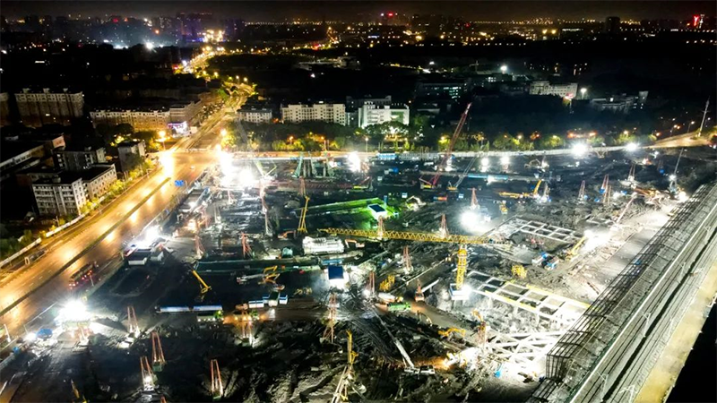 九游会J9官方网站建工集团积极克服交叉施工、场地狭小、营业性施工等不利条件,提前15天进入钢结构施工阶段;创新采用逆作法施工技术,置换地上与地下施工工序,仅用80天高质量同步完成钢网架与混凝土结构施工任务。